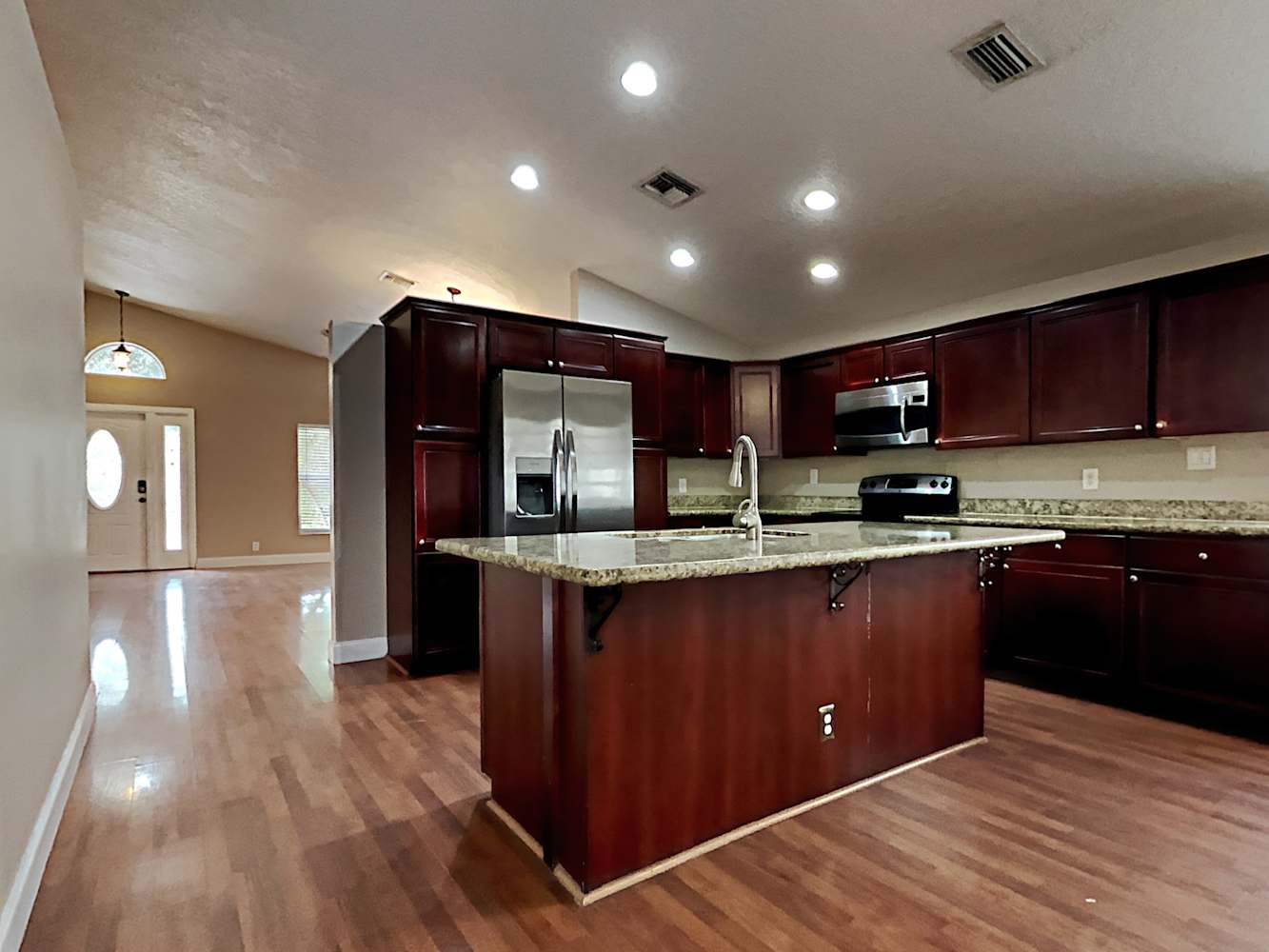 We believe this house is special and we hope you'll agree. Attractive vinyl plank flooring runs throughout the living area. There's an attached garage perfect for storage and DIY projects. Bring your culinary side into life in this functional kitchen made for comfort and ease of use. The granite counters offer plenty of workspace and are perfectly coordinated with the stainless-steel appliances and charming wood cabinets. The fenced backyard offers a patio and swimming pool. Neighborhood amenities include a lake. Apply online now!