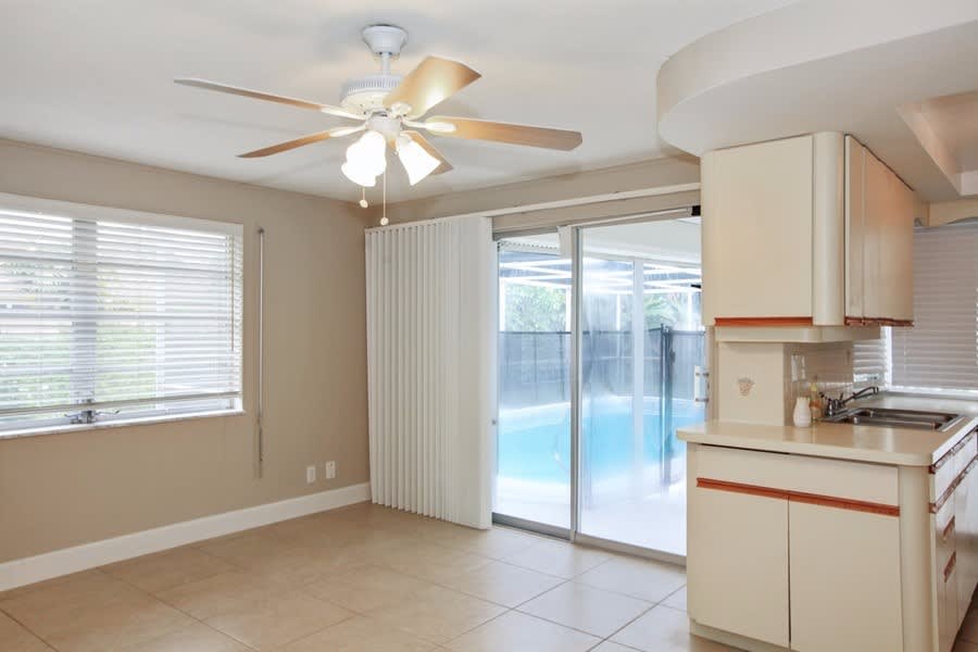 You will love making this gorgeous house your new home! The front exterior boasts a garage and a lush-green lawn that wraps around to the backyard, where you will find a screened-in patio and in-ground pool-area for weekend entertaining. The interior features stylish tile flooring, lots of natural lighting, an open layout for making long-lasting memories, cozy bedrooms with lots of closet space, and a kitchen equipped with stainless steel appliances and charming all-white cabinetry. Make this your home and apply today!
