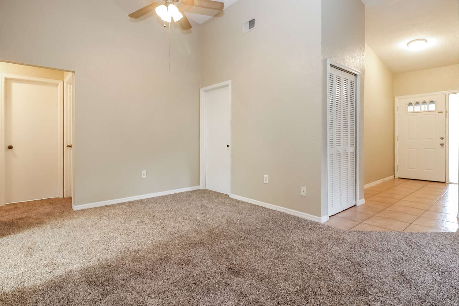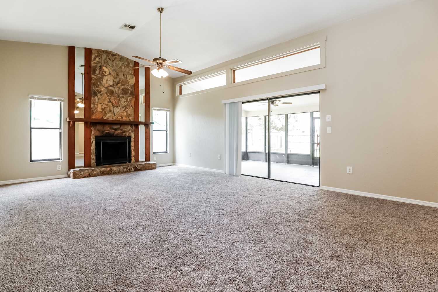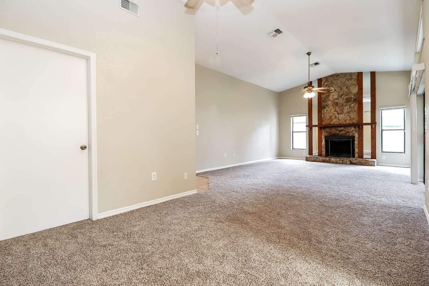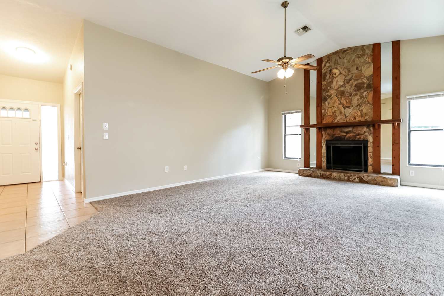 You will love making this beautiful house your new home! The front exterior boasts a two-car garage, a covered entrance, and charming curb appeal, while the fenced backyard is complete with an enclosed patio area for your outdoor enjoyment. The interior is lined with plush carpeting and stylish tile flooring and a large cozy fireplace. The bedrooms are lit with ample amounts of natural lighting and plush carpeting. Additionally, the kitchen is equipped with coordinating appliances and beautiful white cabinetry. Make this your home and apply today!