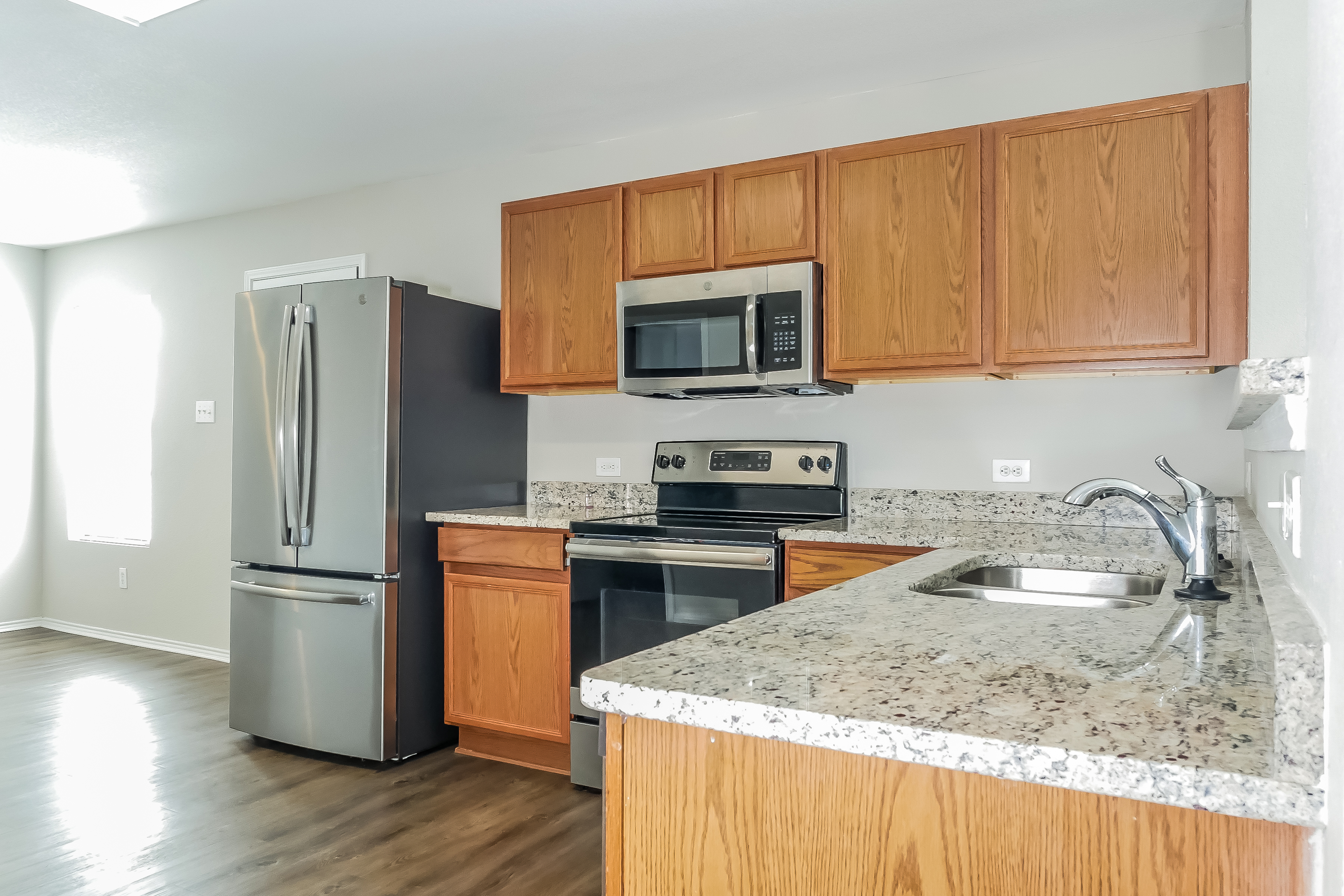 We believe this house is special and we hope you'll agree. Attractive vinyl plank flooring runs throughout the living area. There's an attached garage perfect for storage and DIY projects. Bring your culinary side into life in this functional kitchen made for comfort and ease of use. The granite counters offer plenty of workspace and are perfectly coordinated with the stainless-steel appliances and charming wood cabinets. The fenced backyard offers a patio and more space for everyone. Whether you have pets that need to escape the house or outdoor plants that need sun and fresh air, you'll have the opportunity to turn this yard into an ideal extension of your home. Apply online now!