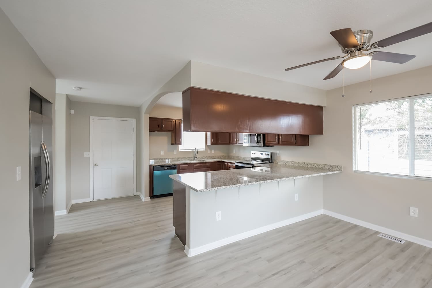 Why settle when you can live in a spacious house that will give you room to grow? Undeniable curb appeal, a breathtaking entryway, modern lighting and a functional design all come together to make a comfortable interior ready for you to transform it into your ideal home. The living area with luxury vinyl plank floors gives you plenty of space for a dining room and entertainment area. Whether you’re prepping food for the grill or making an afternoon snack, the kitchen will give you ample workspace to cook and entertain. The stainless-steel appliances, granite countertops, and high-end cabinets deliver a refreshing look that your dinner guests will enjoy. Personalize this backyard that can serve any purpose, from hosting a home garden to giving your pets a playground. All this place is missing is you. This is your chance to transform a house into a home that fits your unique personality. Apply online today! Invitation Homes complies with all applicable law relating to source of income, including CRS 38-12-904(1)(c). If we discover that you are applying with assistance, your credit score will not be factored into your eligibility.