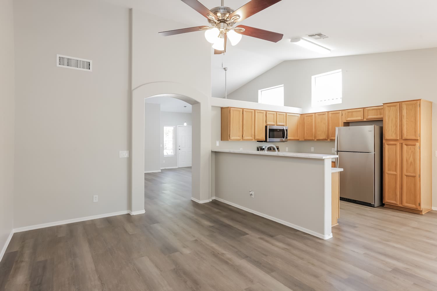 We believe this house is special and we hope you'll agree. Attractive vinyl plank flooring runs throughout the living area. There's an attached garage perfect for storage and DIY projects. Bring your culinary side into life in this functional kitchen made for comfort and ease of use. The sleek counters offer plenty of workspace and are perfectly coordinated with the stainless-steel appliances and charming wood cabinets. The fenced backyard offers a covered patio and more space for everyone. Whether you have pets that need to escape the house or outdoor plants that need sun and fresh air, you'll have the opportunity to turn this yard into an ideal extension of your home. Apply online now!