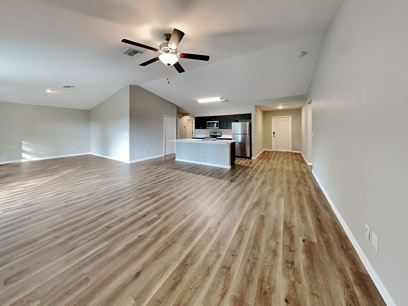 Let's talk about this house! Right away, you'll notice lots of natural light streaming through large windows. Sleek wood-style tile flooring adds that modern touch while ensuring our Lease Freer lifestyle. The kitchen is complete with stainless steel appliances, sleek countertops, a large island and premium cabinetry. Picture yourself relaxing on a sunny day in this lounge-worthy fenced yard, perfectly customizable to fit your lifestyle, whether it’s for pets or playgrounds. Apply online today!