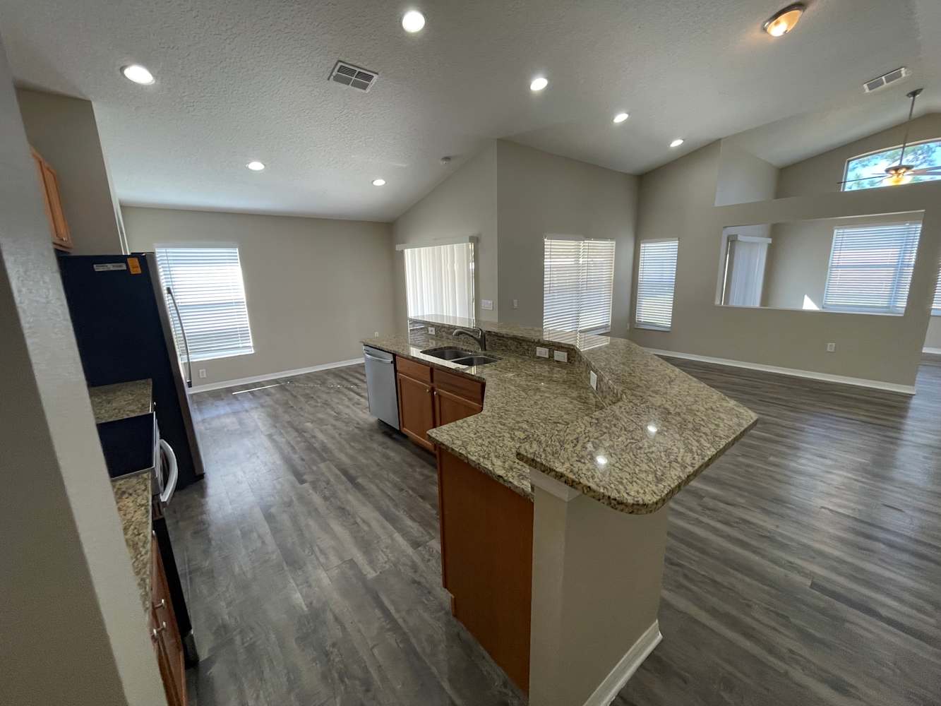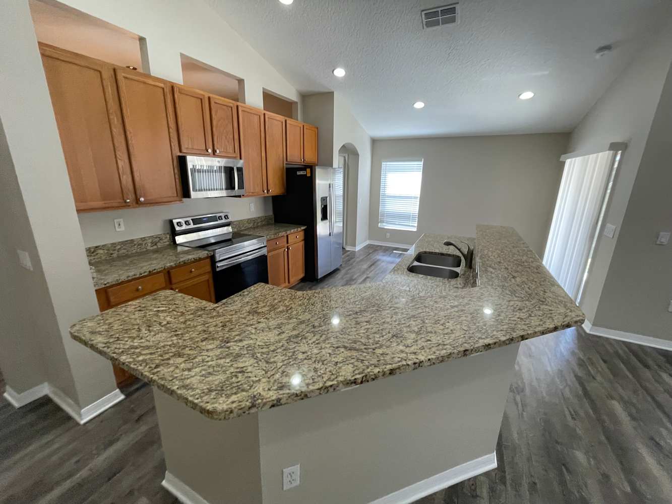 Welcome to your new house. The basics are included. Just add your personal flair to make it into a home. You will instantly feel at ease when you walk through this inviting entryway. This lovely home features vinyl plank floors, spacious bedrooms and a garage. Meal time will be more enjoyable in this lovely kitchen with granite countertops, spacious cabinets, kitchen island, recessed lighting, and stainless steel appliances. A backyard with a covered patio is perfect for any occasion that awaits you in this beautiful home. There is plenty of space to set up your preferred furniture, so you can lean back, relax and let the day's stress fade away. Your pets will thrive behind a privacy fence that also blocks out the sights and sounds of the neighborhood. Apply online today!