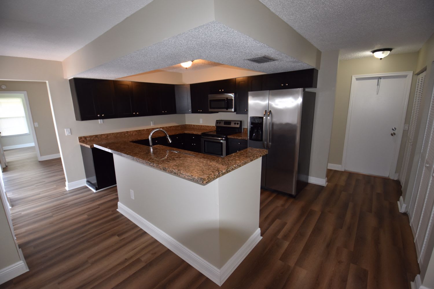 This is the house you've been looking for. It's welcoming, stylish and comfortable. A breathtaking entryway and a functional design all come together to make a comfortable interior ready for you to transform it into your ideal home. Luxury vinyl plank flooring runs throughout the home's living area. The living area gives you plenty of space for a dining room and entertainment area. The comfortable kitchen space is complemented with granite countertops, premium cabinets, and stainless-steel appliances. Meal times and household gatherings will be even sweeter in this kitchen space you can make your own. And when you need a breath of fresh air, step out into a fenced backyard complete with a pool and brunch-ready patio. Apply online now!
