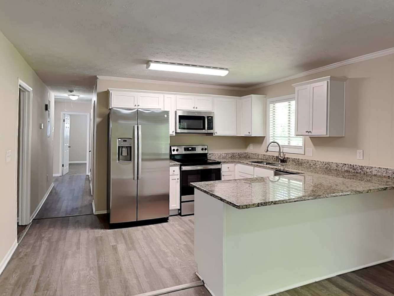 Are you ready to live in a place where you can make your own? Your friends and family will immediately voice their approval when they walk into the elegant foyer which features the luxury vinyl plank flooring that leads throughout the living space. Mealtime will be even more enjoyable in this lovely kitchen with granite countertops, spacious cabinets, and stainless-steel appliances. A fenced backyard perfect for any occasion awaits you in this beautiful home. There's plenty of space to set up your preferred furniture so you can lean back, relax, and let the day's stress fade away on the patio. Apply online today!