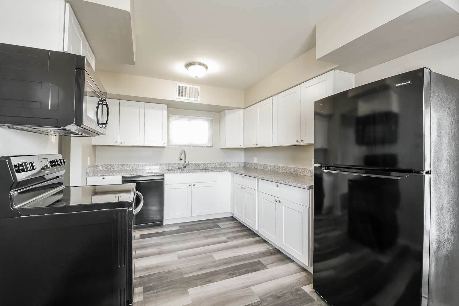 Loving where you live is easy when you have a house like this. You'll notice lots of natural light spilling into the entryway as soon as you open the door. Attractive vinyl plank flooring runs throughout the living area. The kitchen comes complete with premium cabinets, all black appliances and granite countertops all coordinated to deliver an inspiring cooking space that you will love. Confidently let your furry friends loose in the fenced backyard. The well-kept yard has a patio and leaves plenty of space to set up the amenities you need to complete your dream home. Apply online today!