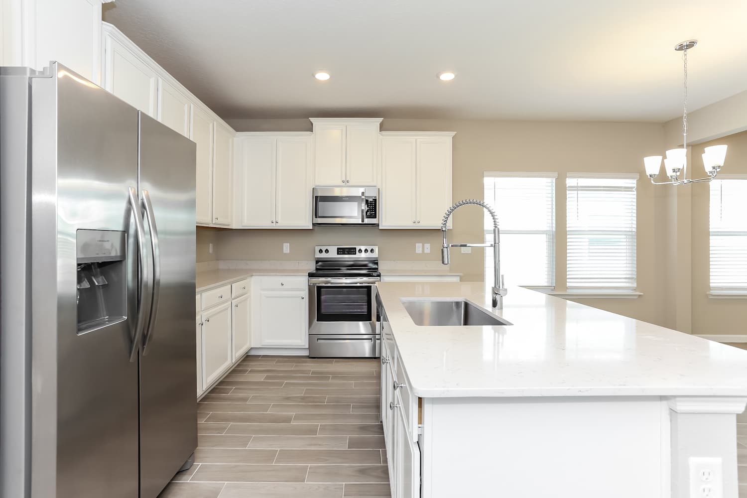 This home is part of Gentle Woods, a thoughtfully planned community. about what Gentle Woods has to offer. Gentle Woods offers newly built, 3 to 4-bedroom rental homes thoughtfully designed with high-quality finishes and functional spaces. Each home includes a spacious kitchen with a central island and stainless steel appliances, perfect for both cooking and entertaining. Enjoy the added convenience of an attached 2-car garage and a private patio for outdoor relaxation. Inside, energy-efficient recessed LED lighting and ample pantry space make daily living a breeze, blending style with practicality.