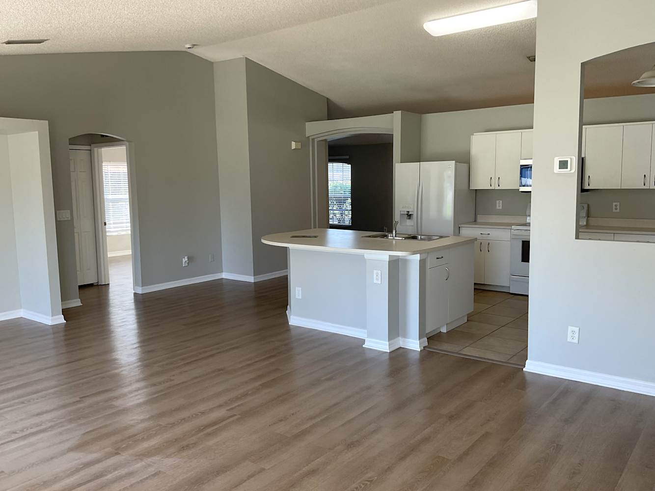 This standout house offers you the chance to live your lifestyle your way. Between the gorgeous entryway and luxury vinyl plank floors, the living space is simply stunning. No one will complain about hosting the next function at your house when they see this bright kitchen's appealing design. Cooking will be less of a chore thanks to these beautiful sleek countertops, premium cabinets, and modern appliances. When you need a breath of fresh air, step out into the complete with a lovely patio and soak up some sun. All this place is missing is you. Apply online today!